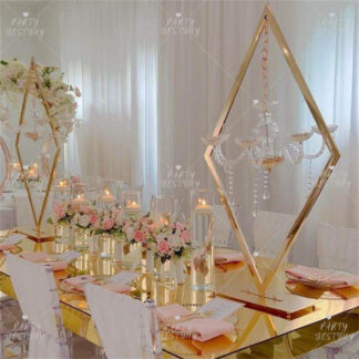 1.2m 6 heads Gold Diamond Shaped Chandelier Stands Centerpiece Wedding Party Event