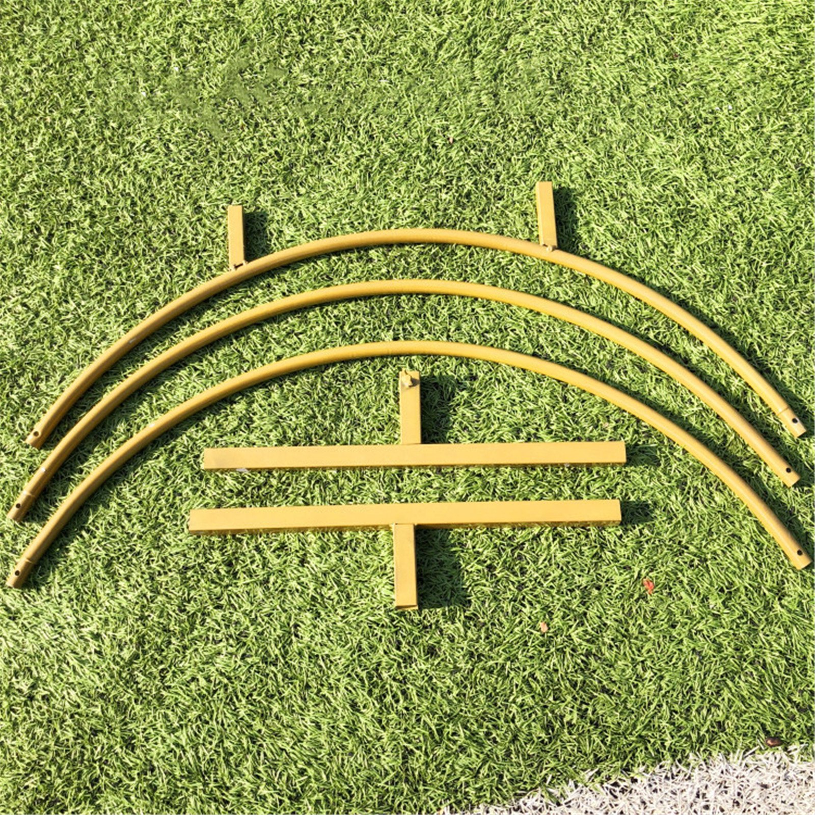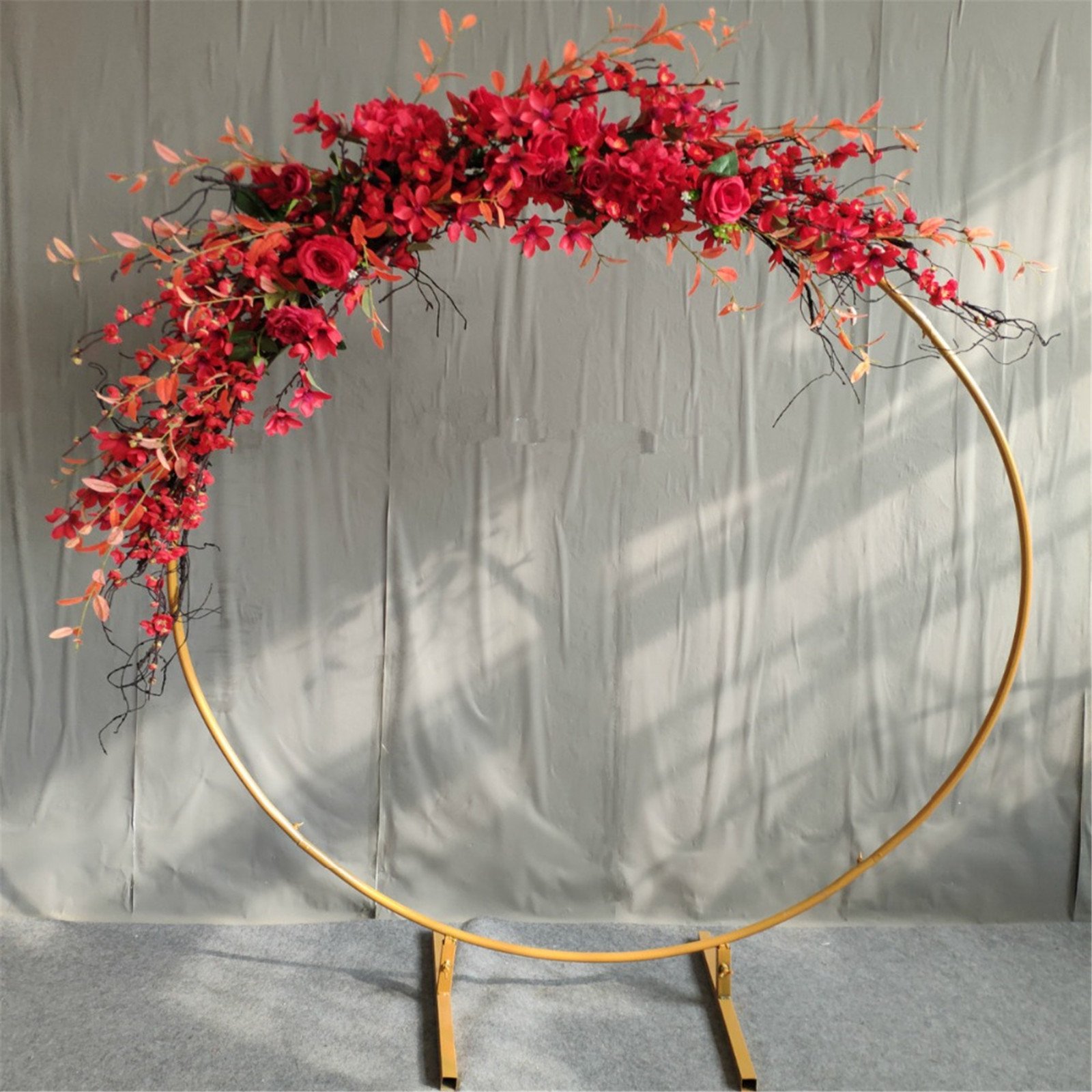 The Round background Stand Wall is made of metal and finished in a crisp goldcolour. It features a classic arch shape with cross-tiers adding to the overall strength.