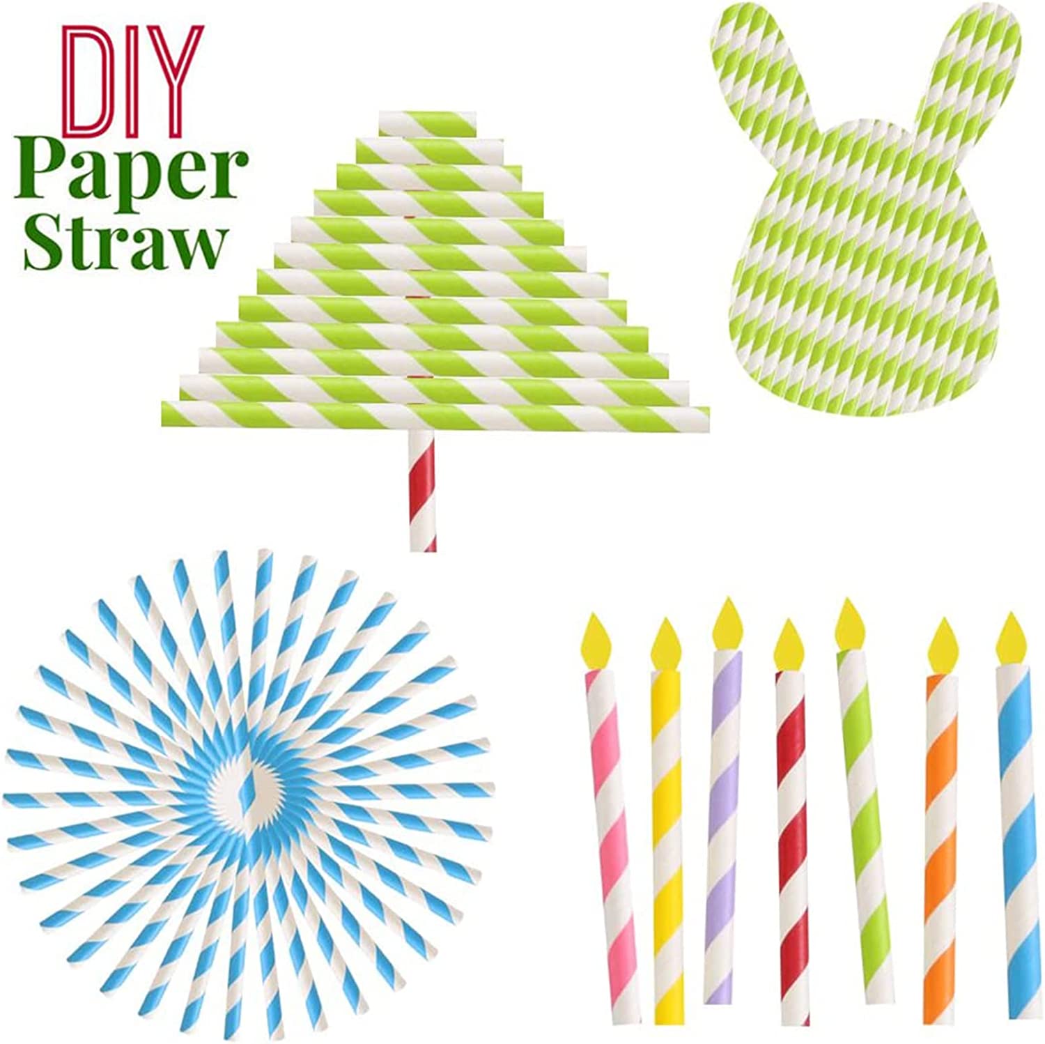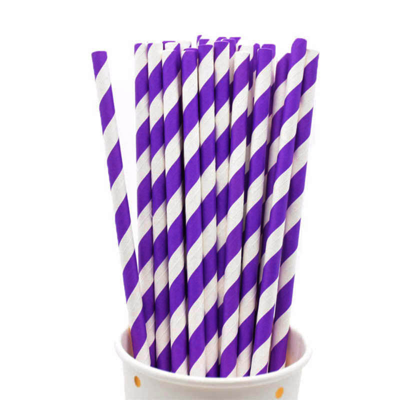 50x Colourful Paper Drinking Straws Retro Vintage Striped Paper Straw Party Wedding Birtday