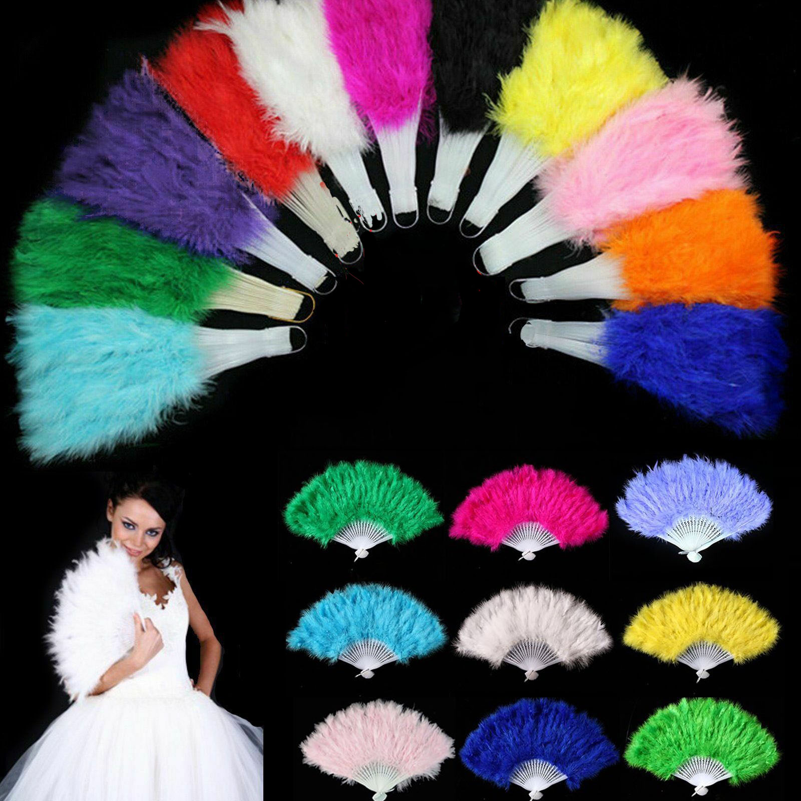 – Sweet and Fluffy Feather Fan with White or Beige Lace Design Plastic Staves Great for promotions, dancing, weddings, or that special event you maybe attending.