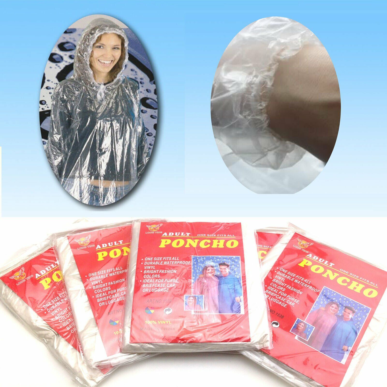 -50PCS OR 100PCS Transparent disposable rain poncho